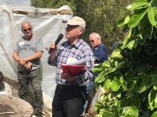 במפגש קבוצת גינון בביתו של אבי אלימלך, הירצה נדים על כנימות עלה.