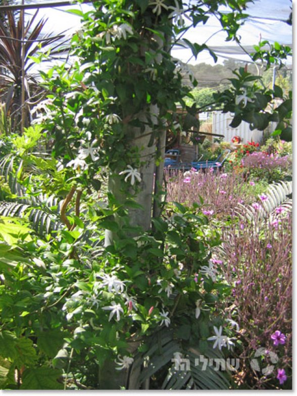 מטפס נכרך, רב שנתי, ירוק עד, או שיח בגובה 1.5 מטר. העלים ירוקים פשוטים צרים ומחודים בגוון ירוק כהה. הפריחה דמויית כוכב בגודל 4 ס״מ, באשכולות של פרחים פשוטים, עם עלי כותרת צרים, מופיעה בקצות הגבעולים, לבנה וריחנית במיוחד בלילה. הניצנים ורודים. אינו מתאים לאזורים קרים מאוד, יזדקק להגנה מפני הרוח, מתאים לפטיו או גדר מוצלת, למיכל כמטפס קטן ואף לכיסוי קרקע. יש לגזום את הענפים לאחר הפריחה במידה ומעוניינים לעבות את הצמח. מוצאו של הזן באיים בדרום אפריקה. (בזני היסמין הדרום אפריקאים, השפה העליונה של עלה הכותרת תמיד לבנה).