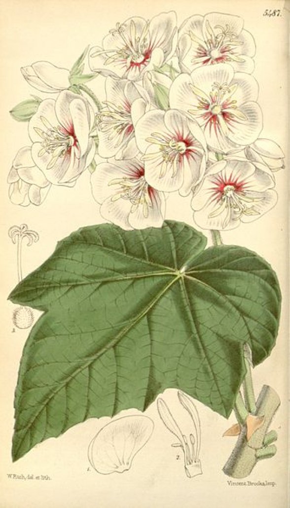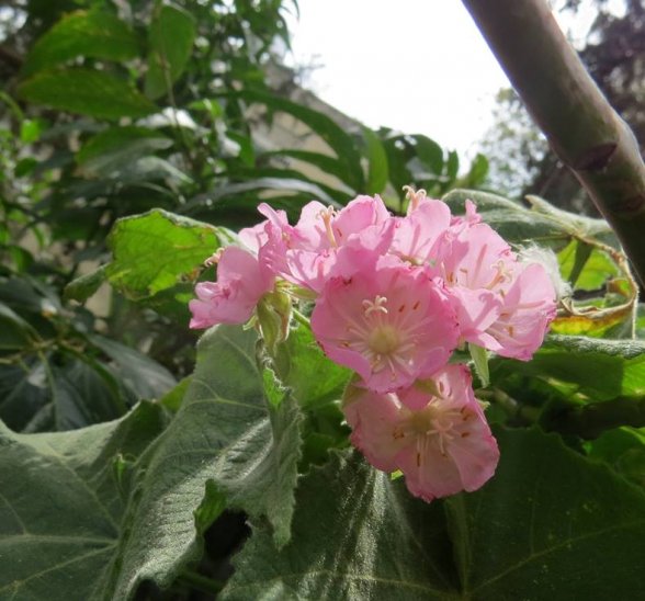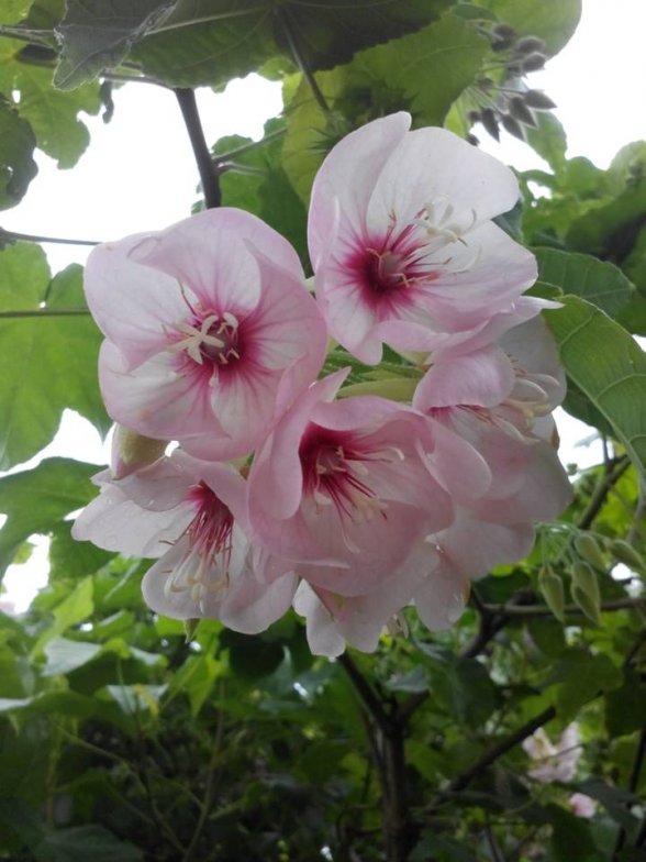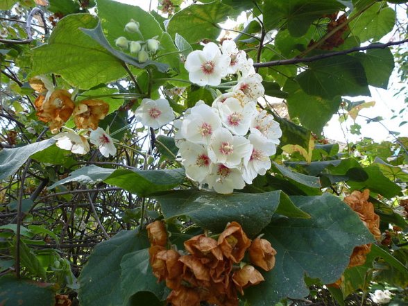 שיח או עץ קטן, ירוק עד, רב שנתי. בעל אשכולות כדוריים של פרחים ריחניים בורוד בהיר התלויים מהענפים. הפרחים הורודים מקבלים גוון חום כשמתייבשים. העלים דמויי לב, גדולים מאוד, מגיעים אף ל-17 ס״מ, ירוקים, רכים, משוננים ושעירים. מעדיף אזורים חמים, מתאים להשקיה מועטה אך יסתדר עם השקיה סדירה. מומלץ לעצב ולדלל את הצמח בצעירותו על מנת ליצור צורה מתאימה. הצמח צומח מהר ויכול להגיע לגודל הקרוב למלא תוך 3 שנים. מתאים לשתילה באזור מואר באור שמש מתחת לעצים גבוהים.