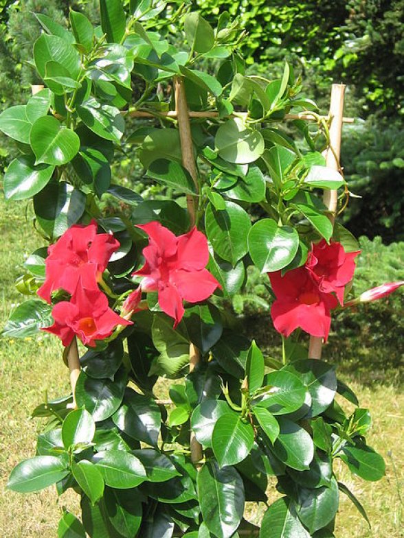 מטפס עדין וקטן, נכרך, רב שנתי ונשיר מותנה. באזורים קרים מאוד מתנהג כעונתי. פרחים בגודל 5 -7 ס״מ, אדומים דמויי חצוצרה, צינוריים בעלי 5 עלי כותרת מחודדים, גדלים באשכולות של פרחים בודדים בקצות הענפים. העלים באורך כ-9 ס״מ, ירוקים כהים, פשוטים, מבריקים וחלקים, בזוגות לאורך הענפים הגמישים והמפותלים. הצמח מגיב טוב לגיזום ודישון. לצמח ממשפחת ההרדופים שרף חלבי. הצמח עמיד למדי למליחות.