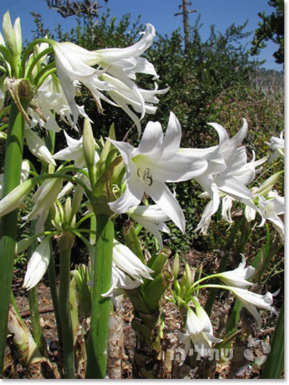 צמח בצל, רב שנתי ירוק עד, או נעלם בחורף. בעל שושנת עלים צרים בצורת מזרקה. פרחים גדולים באשכול בקצה עמוד פריחה זקוף. מתאים לערוגות פורחות, מתחת לעצים, בעציצים ומסלעות.