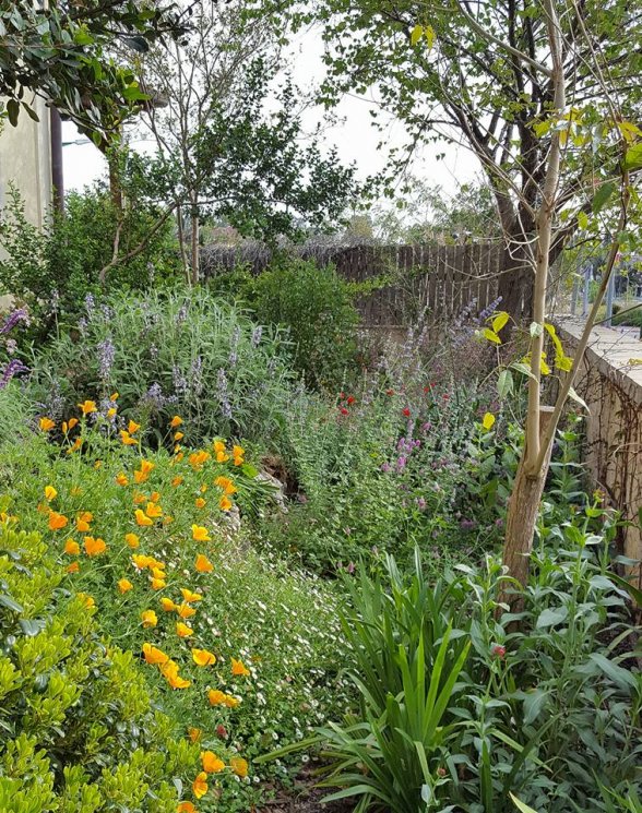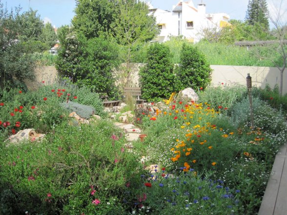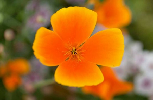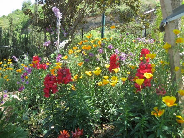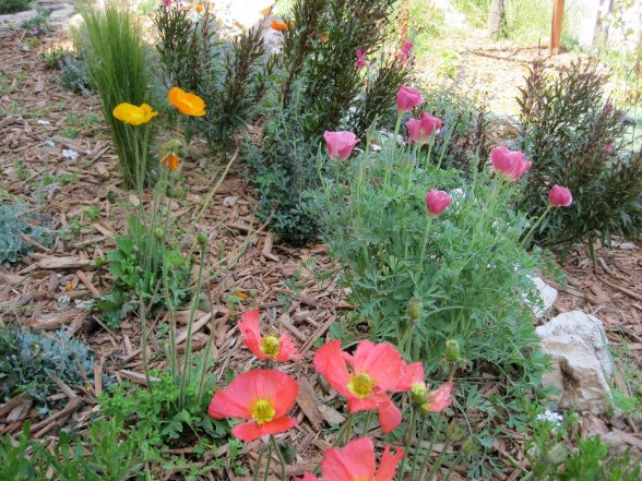 אשולציה קליפורנית, צמח עונתי חורפי, פרחים גדולים, עם עלי כותרת עדינים בגוונים לבן, צהוב, כתום וורוד. עלים גזורים בגוון אפור. פורח בסוף החורף, בתחילת הקיץ ובאביב. הפרחים נסגרים לקראת החשיכה. מתאים לקו שלישי לחוף הים. מזריע את עצמו.